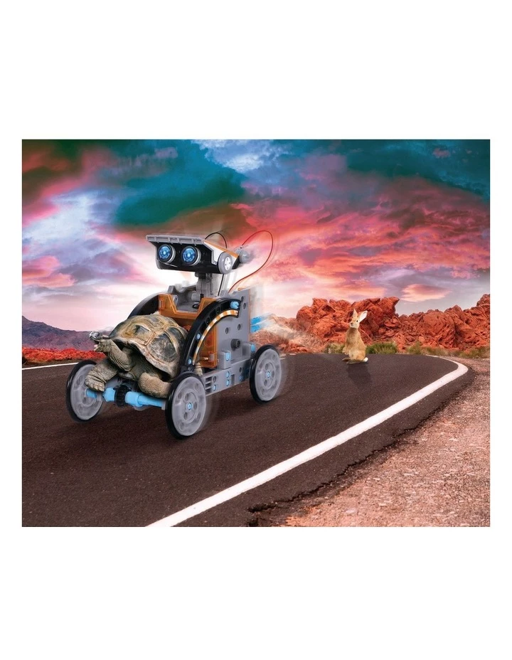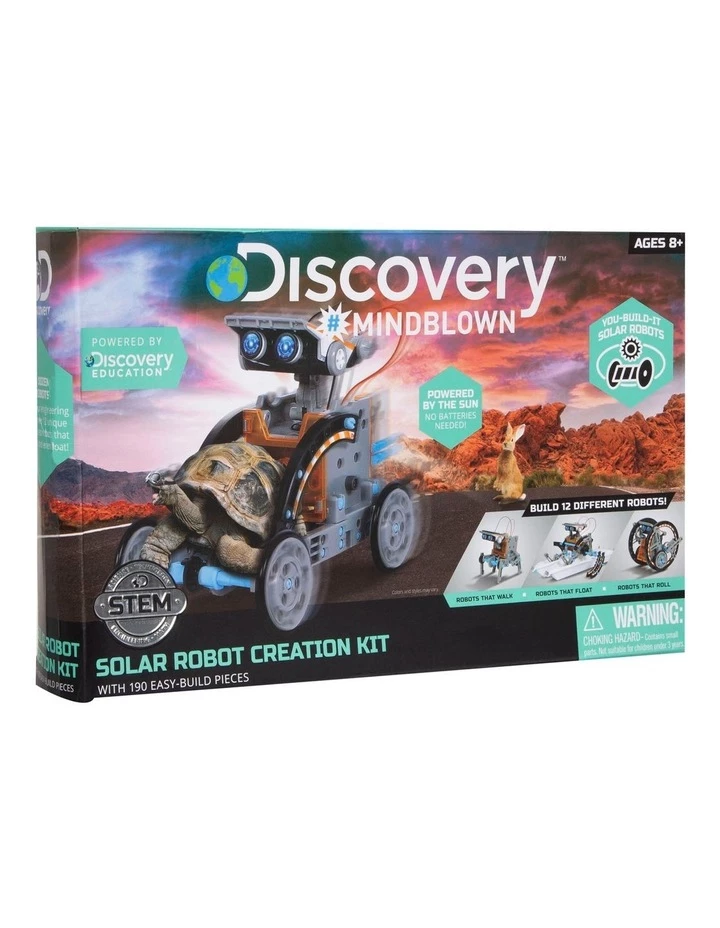 The kit includes a solar panel that powers the positive and negative cables.Children will build a real working solar-powered motor that serves as the motorized foundation for each robot model!