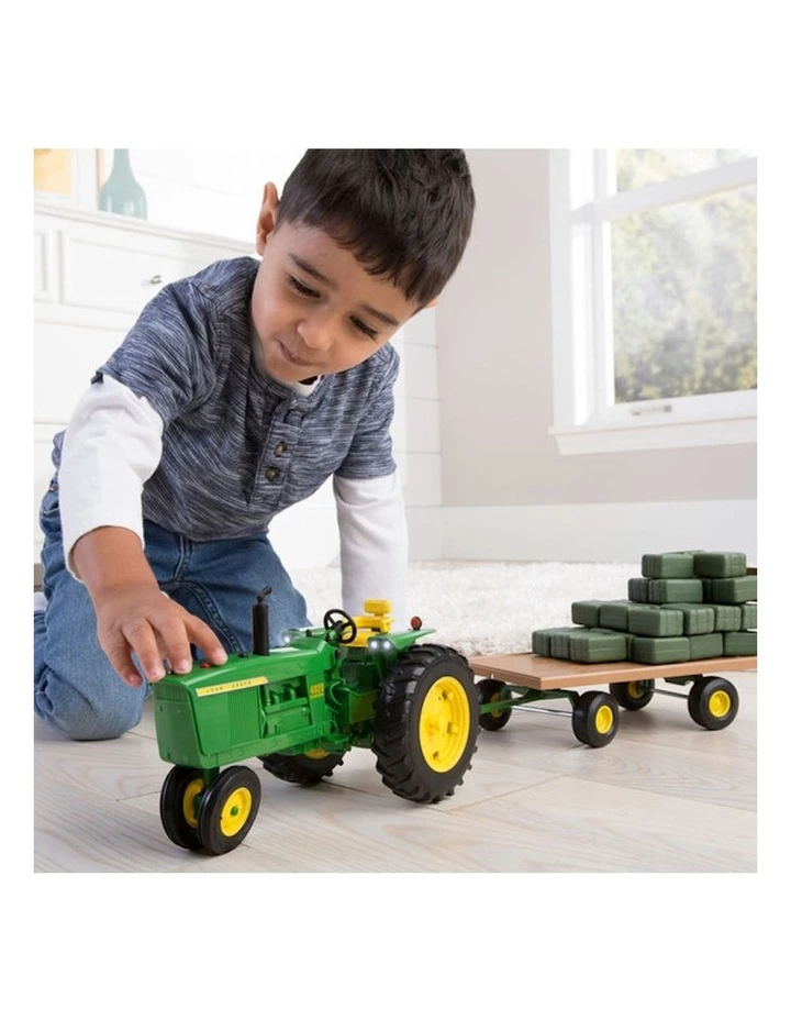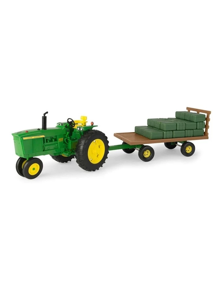 John Deere 1:16 Big Farm 4020 Tractor with Hay features lights and sounds and easily attaches to the hay wagon.