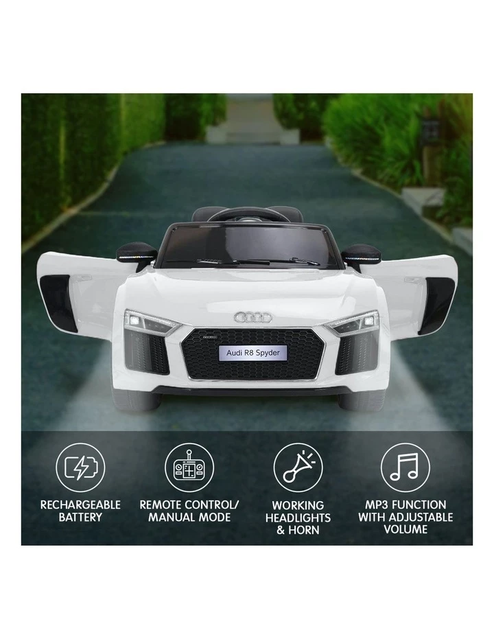 Treat your little ones to the most stylish ride-on ever. The Audi-licensed R8 Spyder Electric Car is sure to elicit oohs and aahs from your little car enthusiasts. This fantastic replica boasts luxurious and sporty detailing that looks just like the original, down to its iconic logo, silhouette, and colorway.