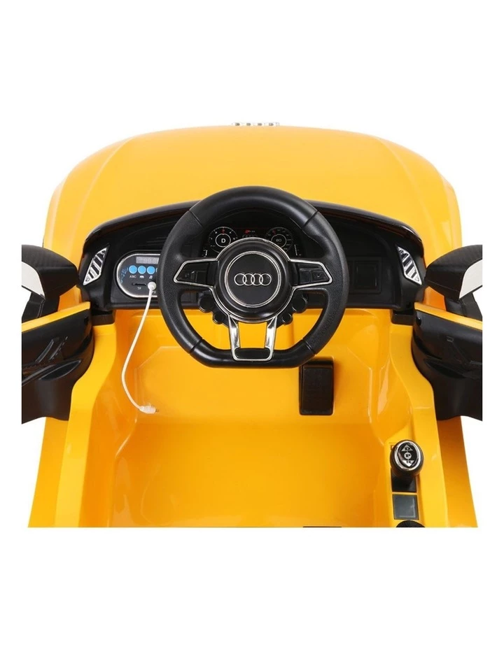 Open the workable doors, step inside the cabin and you will be impressed with all the dash candies to make the R8 go whiz in a jiffy. Forward/reverse/stop controls, speed switch, horn, lights and even MP3 connectivity for great music on the move.