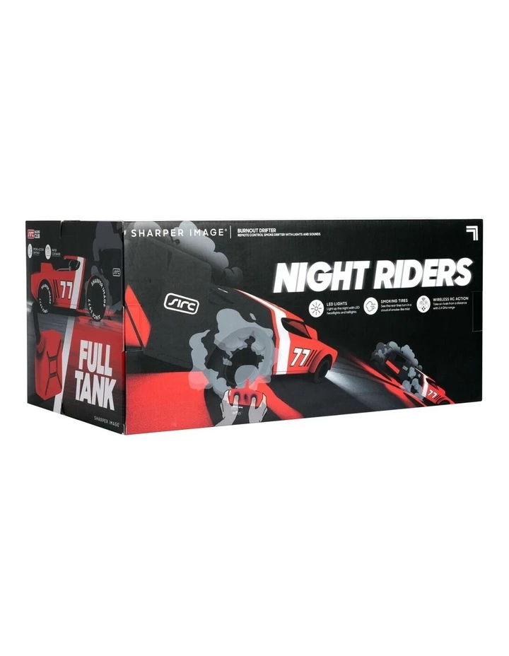 The included wireless remote control has an extended range to keep the fun going! Use the wireless controller to navigate obstacles and perform stunts with your Night Riders car. Take charge of the action from a distance with 2.4 GHZ wireless control.